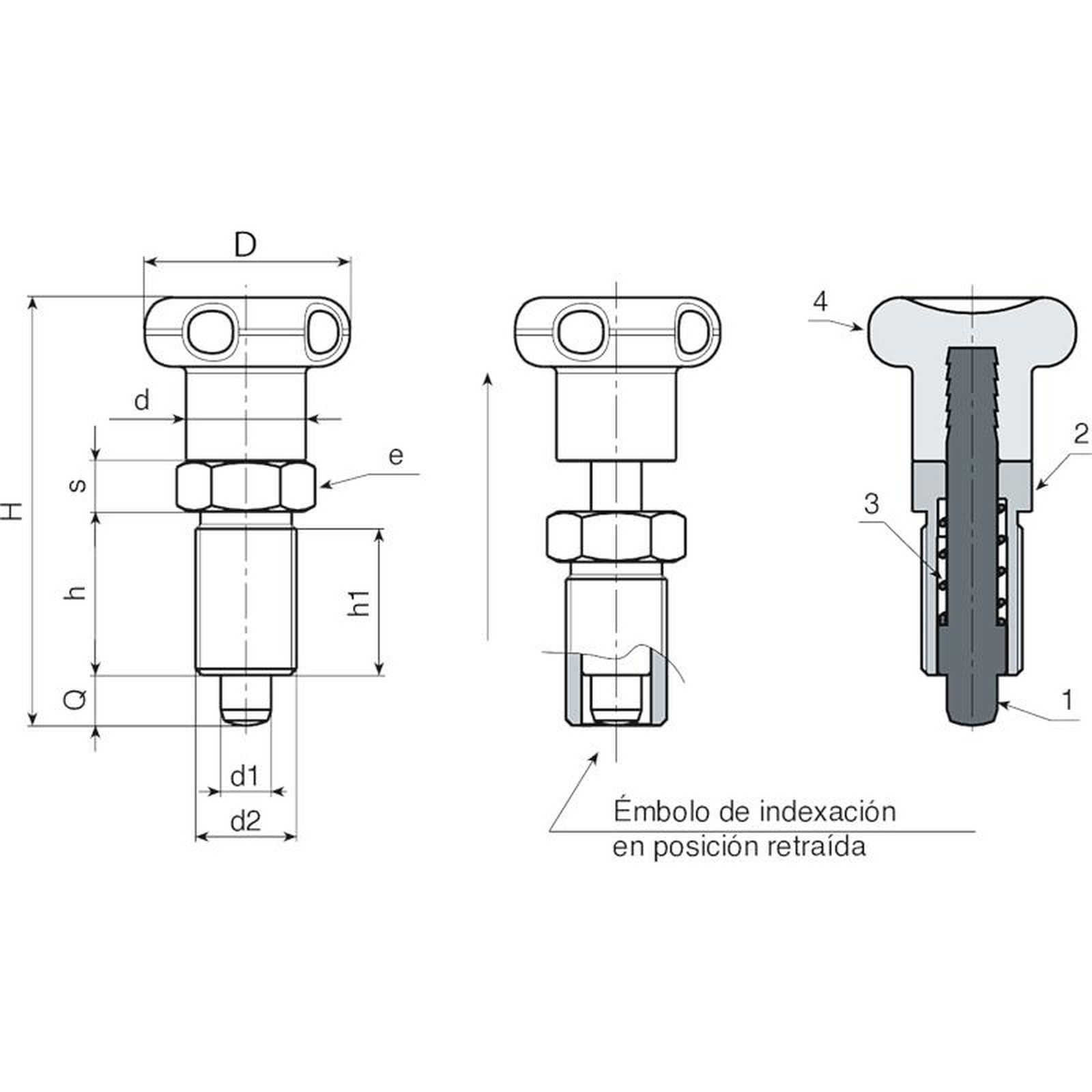(1) Perno émbolo de indexación de acero inoxidable (AISI 303).