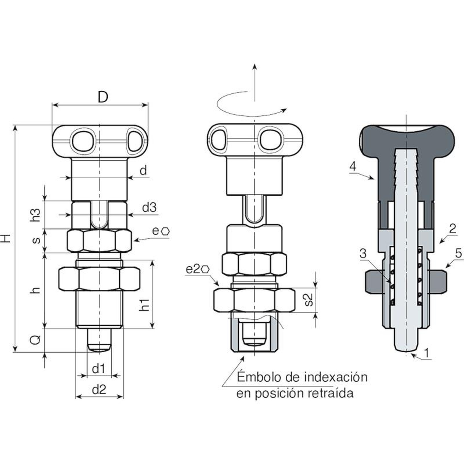 (1) Perno émbolo de indexación de acero inoxidable (AISI 303).