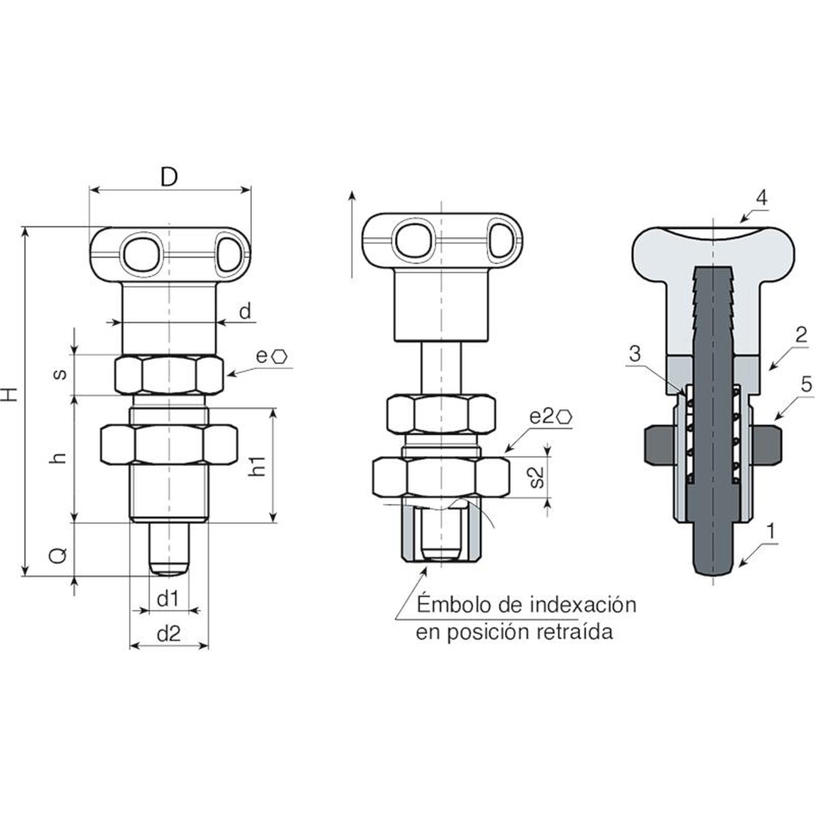 (1) Perno émbolo de indexación de acero inoxidable (AISI 303).