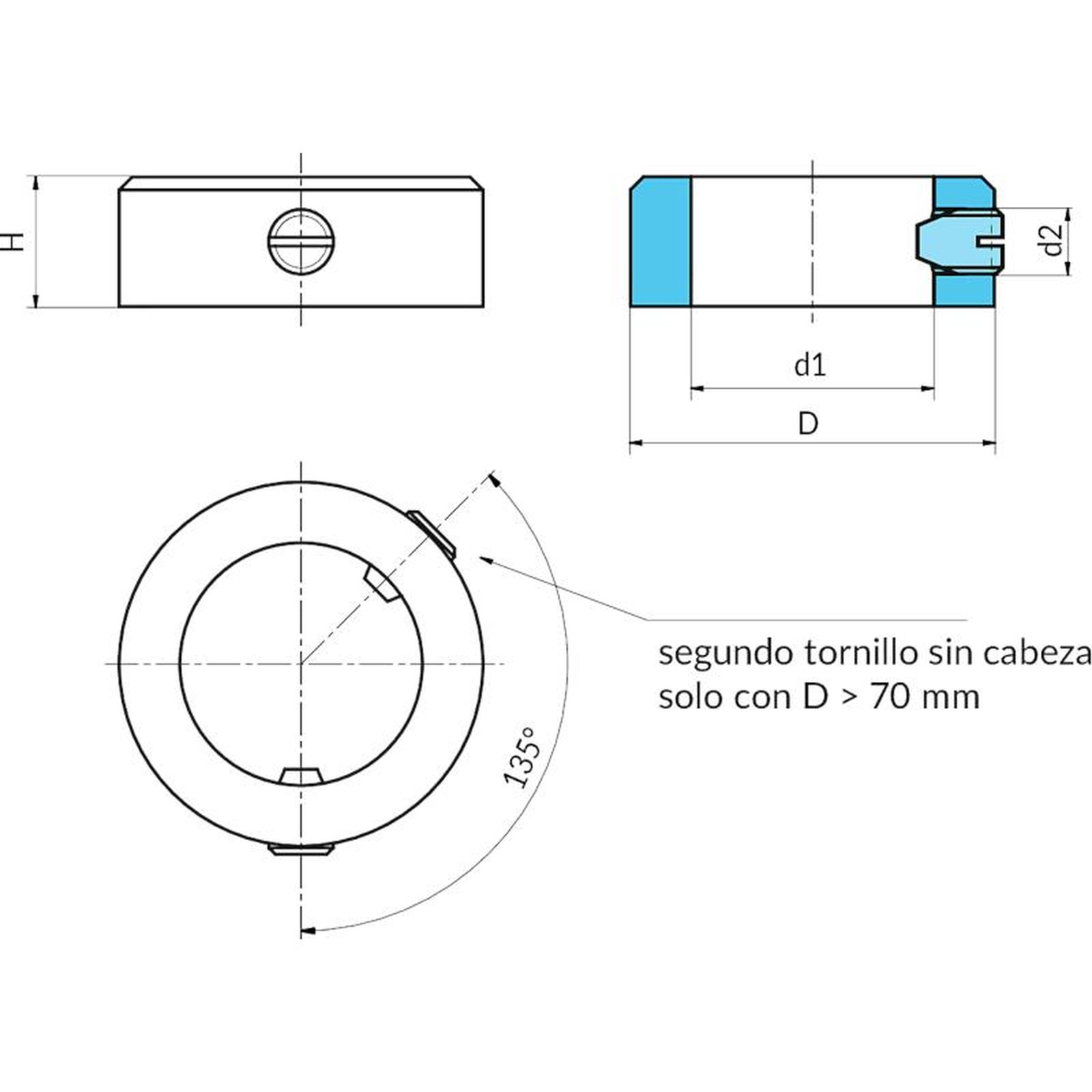 el segundo tornillo sin cabeza se agrega a partir del diámetro D ≥ 70 mm.