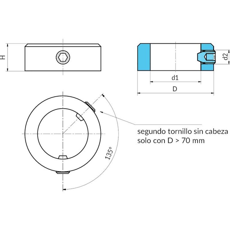 el segundo tornillo sin cabeza se agrega a partir del diámetro D ≥ 70 mm.