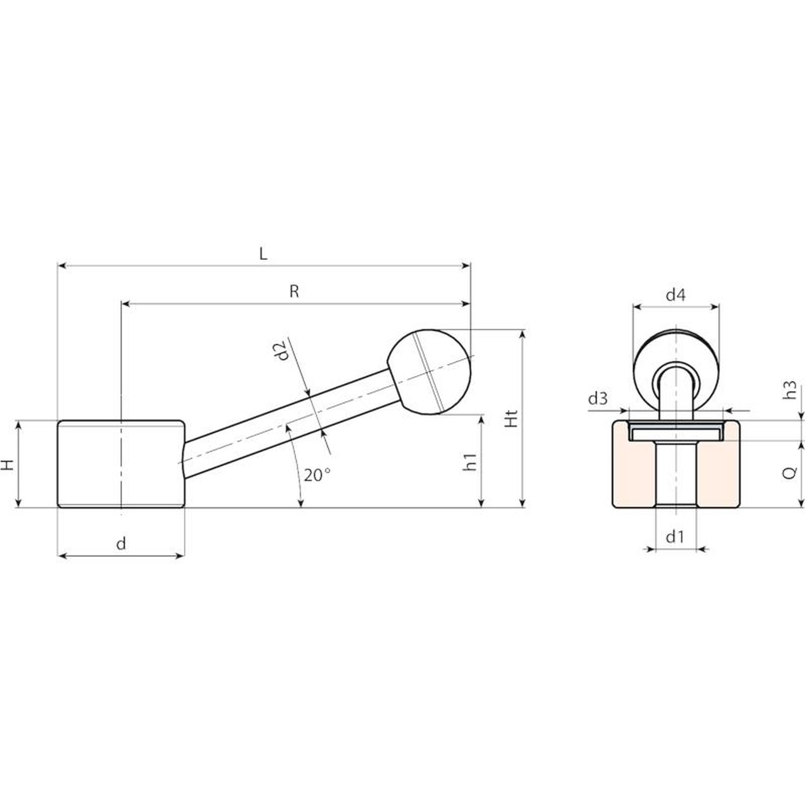 | Koodi | Art. | d | R | L | H | Ht | h1 | h3 | d2 | d3 | d4 | d1 H10 | Q | Paino (g) |