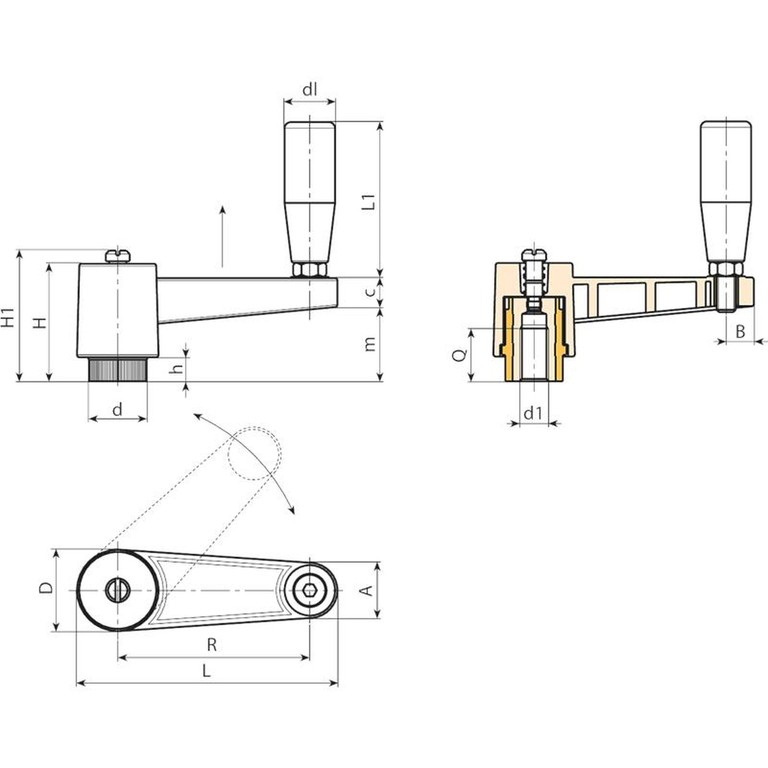 | Koodi | Art. | L | R | H | D | d | m | c | A | B | h | H1 | d1 6H | Q | dl | L1 | Paino (g) |