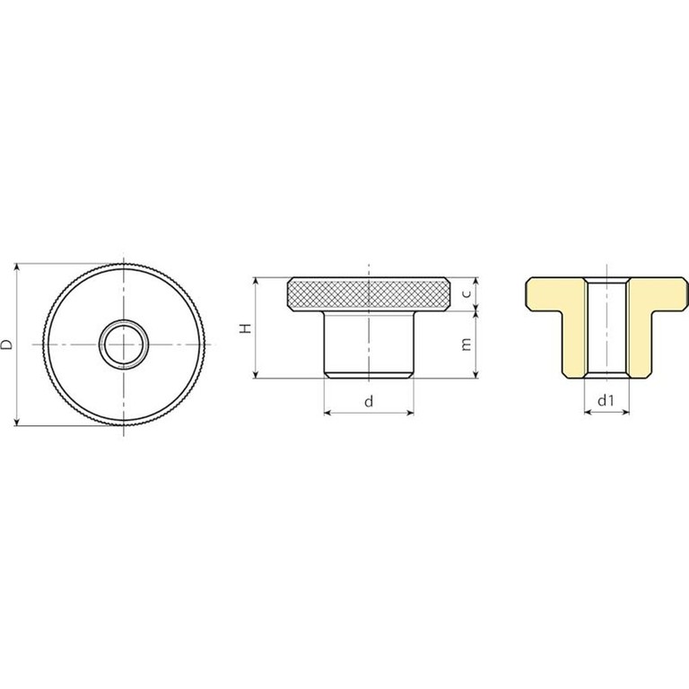 | Koodi | Art. | d | D | H | m | c | d1 6H | Paino (g) |
