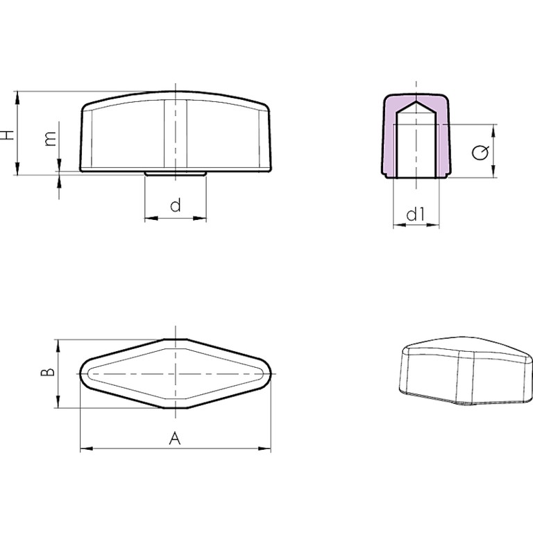 Koodi | Art. | A | B | H | m | d | d1 6H | Q | Paino (g) |