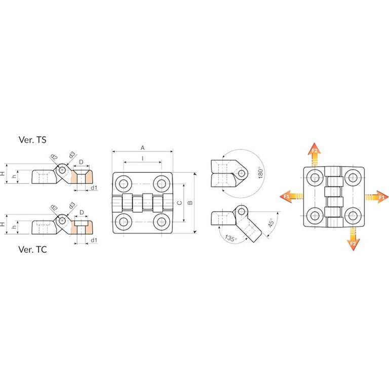 | Koodi | art. | I | C | A | B | h | H | D | d2 | d3 | d1 | Paino (g) | F1 (N) | F2 (N) |