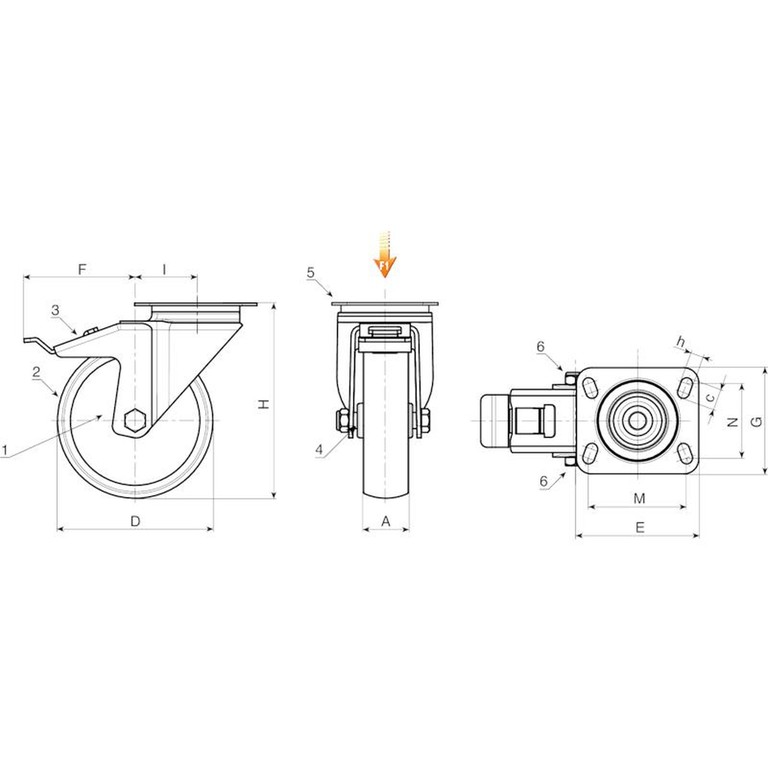 YHDESTÄ KAPPALEESTA VALMISTETTU PYÖRÄ, POLYAMIDIA, SUORAKULMAINEN KIERTYVÄ TERÄSLEVY, LAAKERI – JARRULLINEN (RASKAS KUORMA)