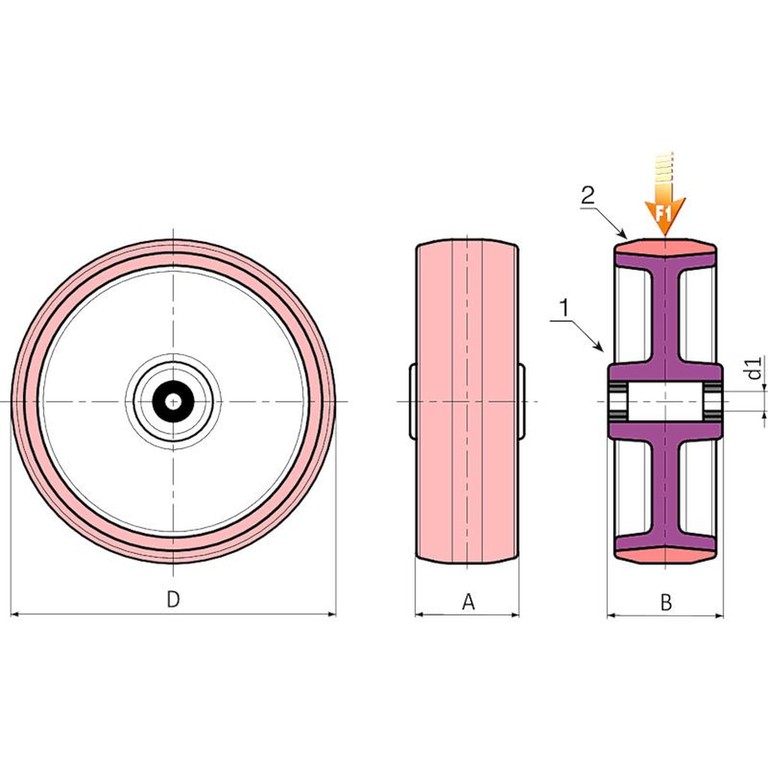 | Koodi | art. | D | A | B | d1 | Paino (g) | F1 (Kg) |