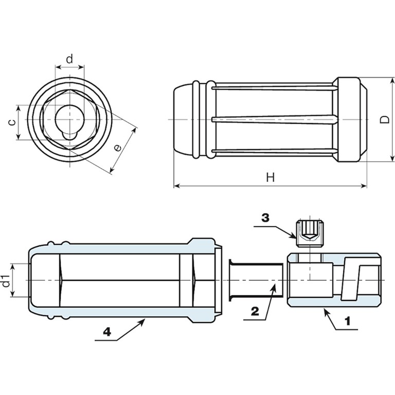 Koodi | art. | D | H | d | c | e | d1 | Paino (g) | Amp. Max |