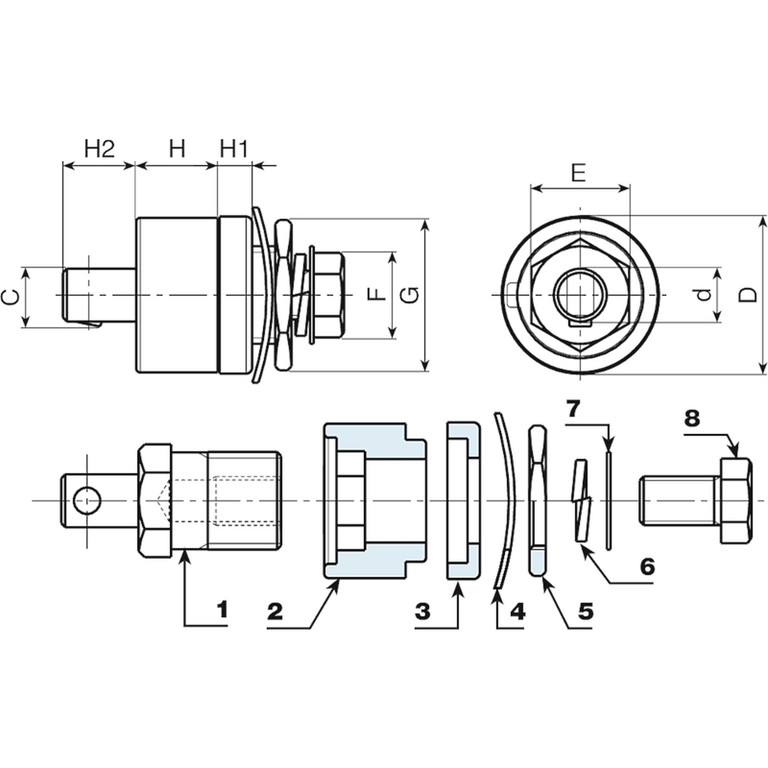 Koodi | art. | D | H | H1 | H2 | d | c | E | F | G | Paino (g) | Amp. Max |