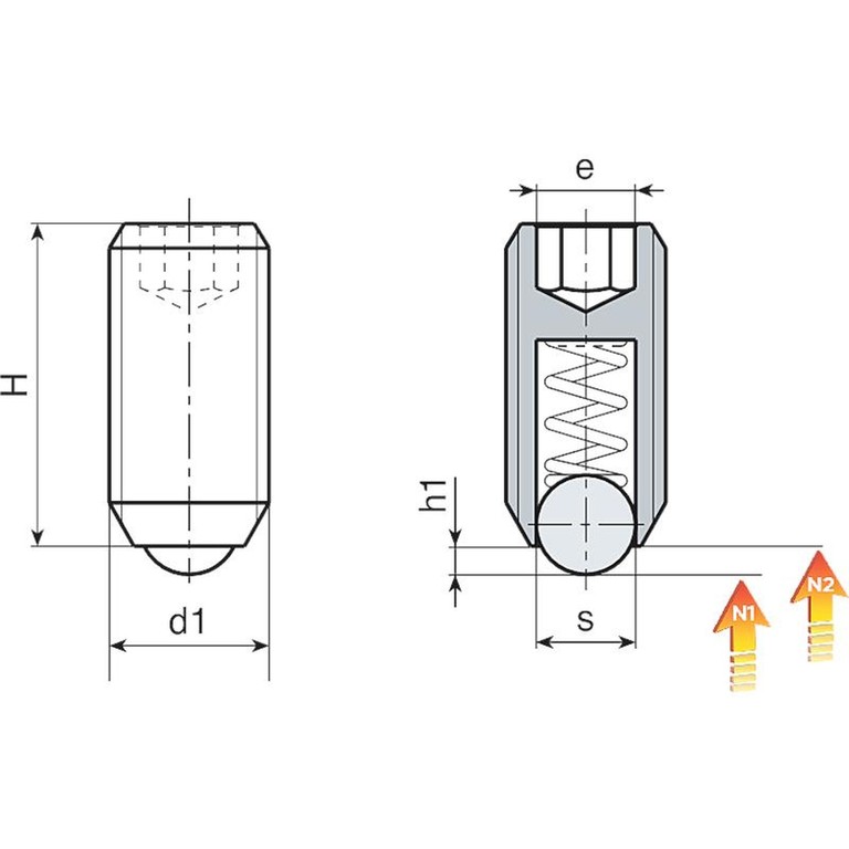 | Koodi | art. | s | H | h1 | e | N1 (N) | N2 (N) | d1 6H | Paino (g) |