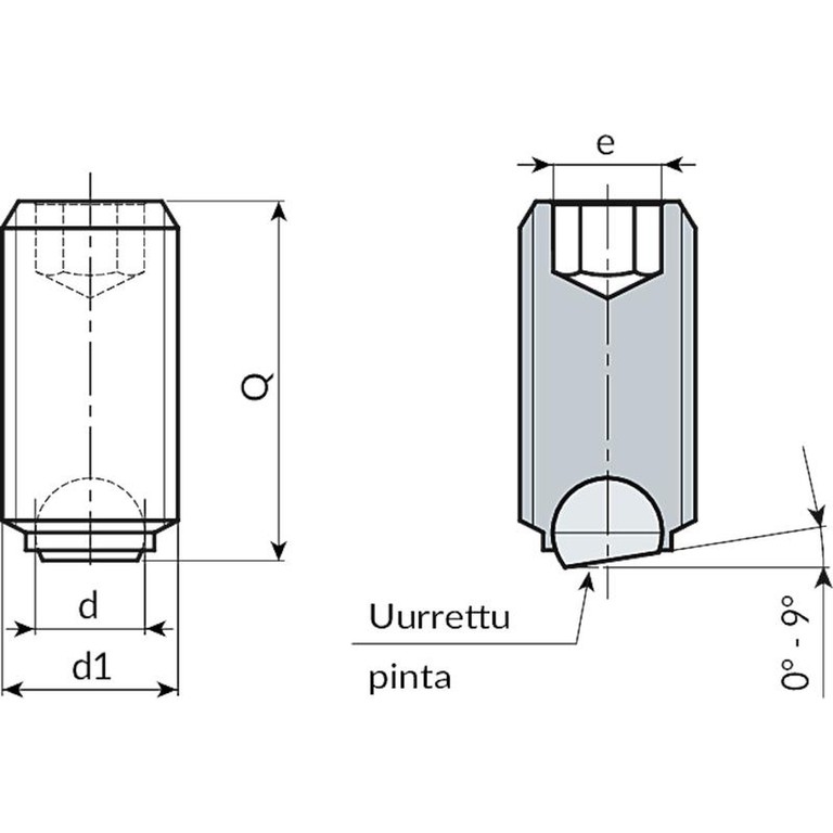 Vaarnan runko nuorrutettua terästä, lujuusluokka 10.9.