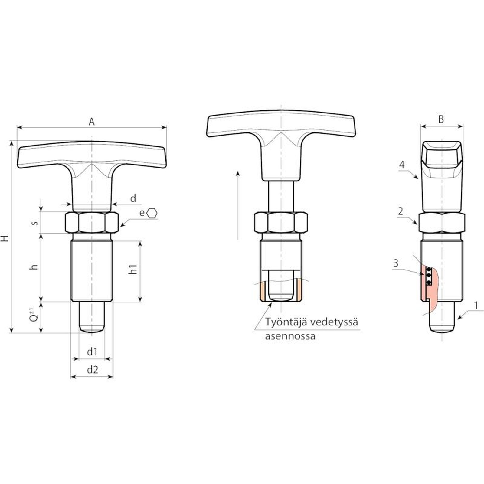 > Lukitustapin vartta varten tehtävään asennusreikään suositellaan toleranssia H7.