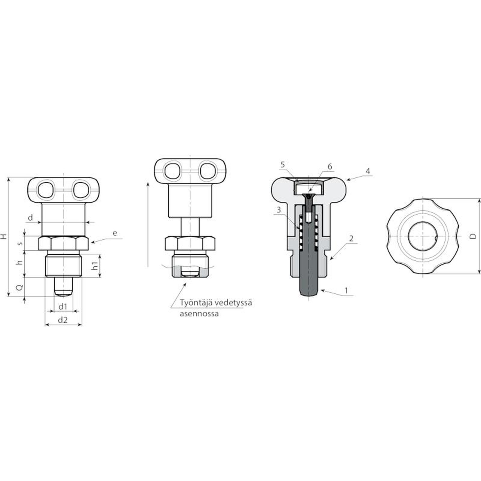 > Lukitustapin vartta varten tehtävään asennusreikään suositellaan toleranssia H7.