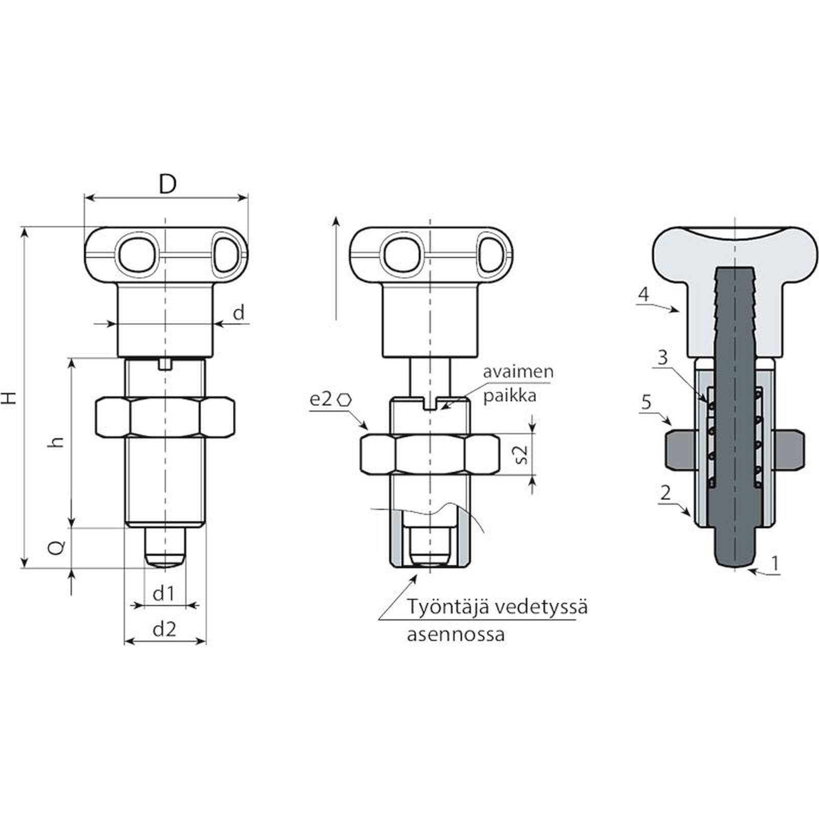 > Lukitustapin vartta varten tehtävään asennusreikään suositellaan toleranssia H7.