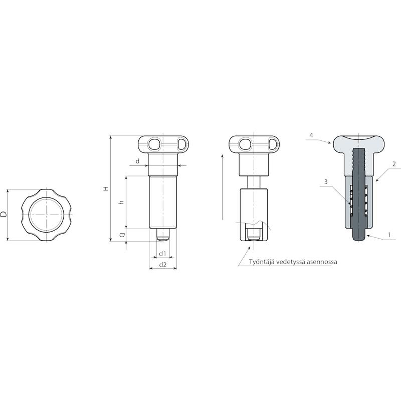 > Lukitustapin vartta varten tehtävään asennusreikään suositellaan toleranssia H7.
