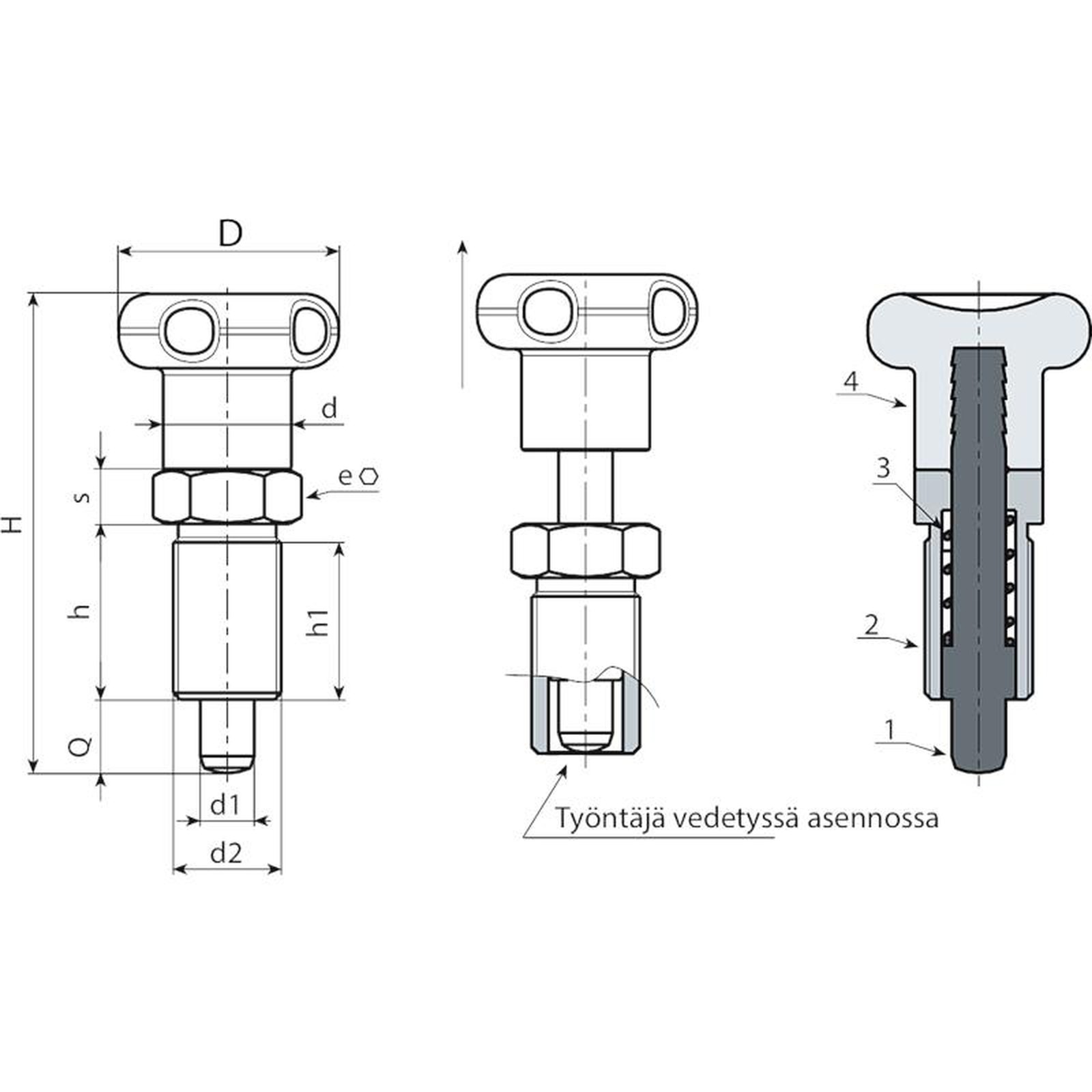 > Lukitustapin vartta varten tehtävään asennusreikään suositellaan toleranssia H7.