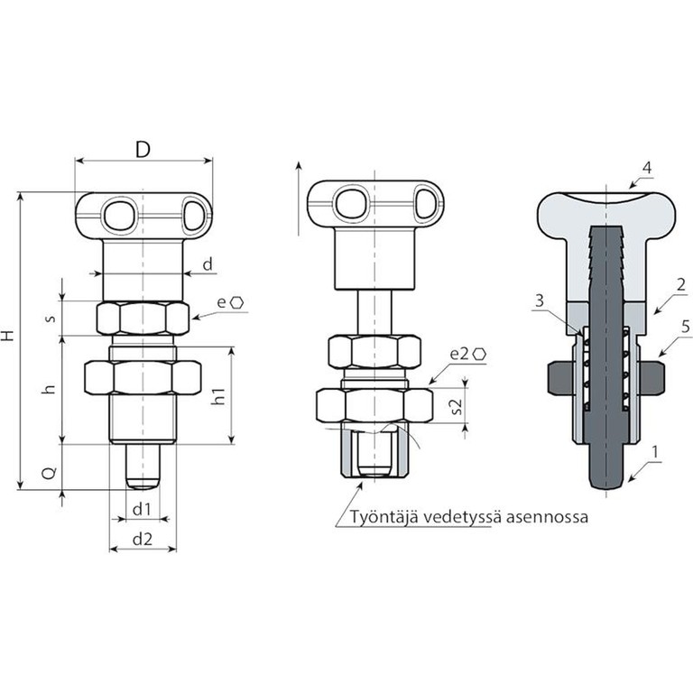 > Lukitustapin vartta varten tehtävään asennusreikään suositellaan toleranssia H7.