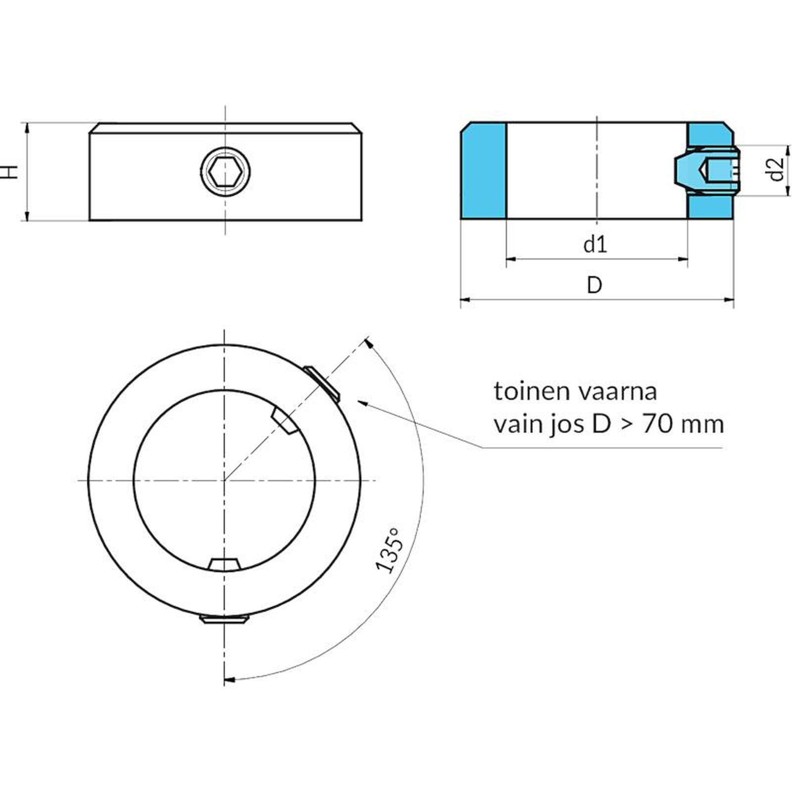 | Koodi | Art. | D h13 | H js14 | d2 | d1 H8 | Paino (g) |