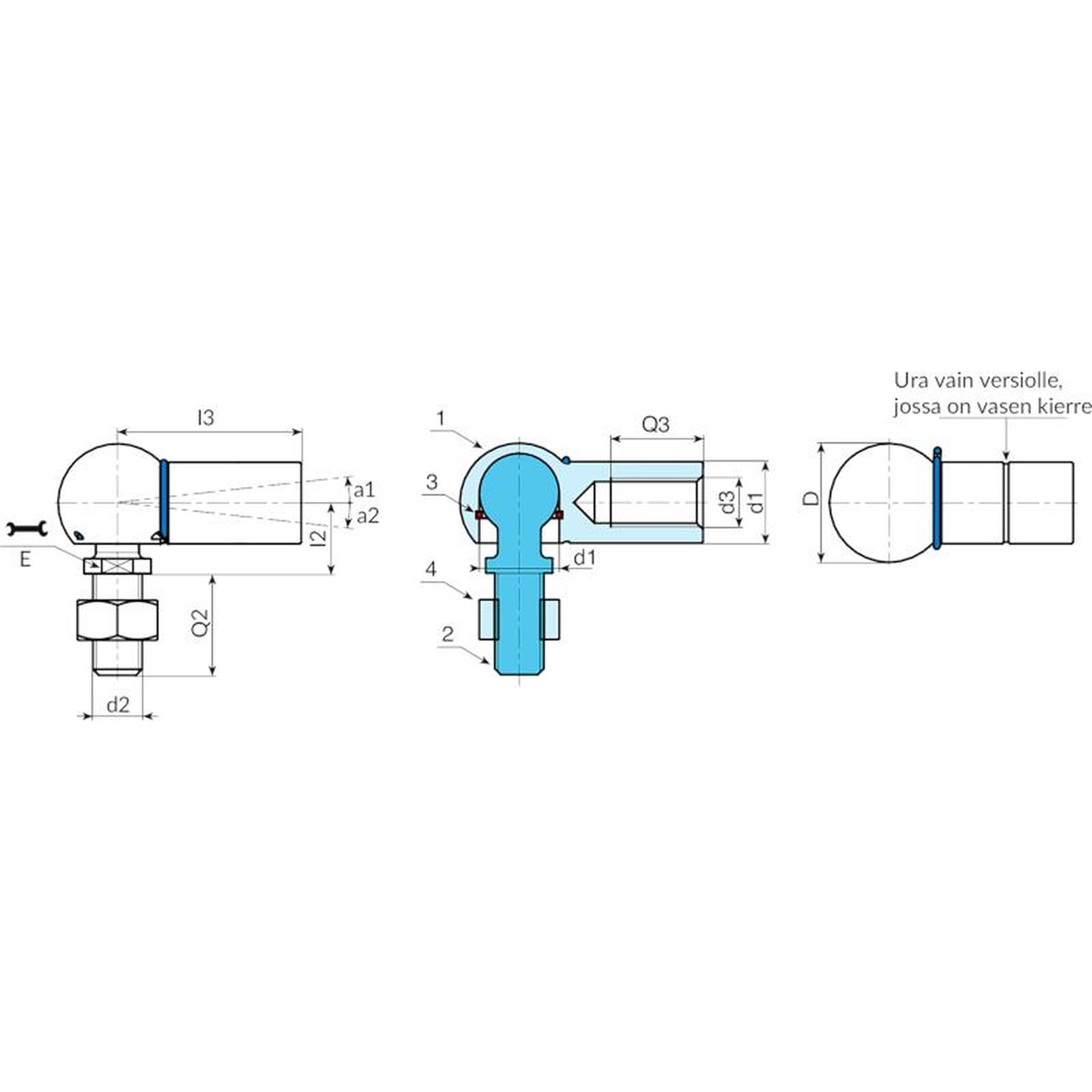 Vasen kierre (kierretoleranssi 6H). Tunnistettavissa nivelen urasta.
