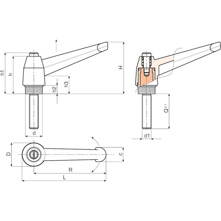 | Code | Art. | L | R | H | D | d | c | h | h1 | h2 | h3 | LM | d1 6g | Q | Poids (g) |