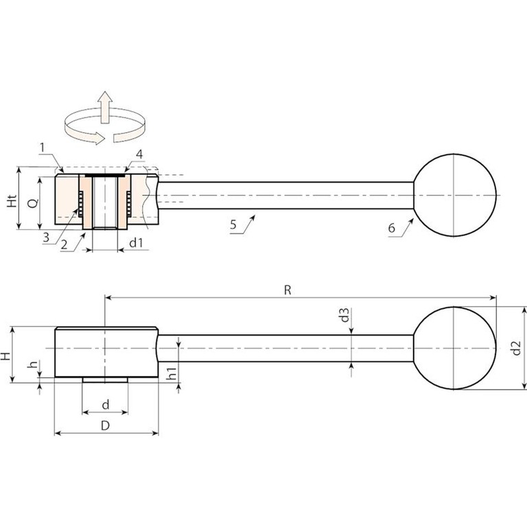 | Code | Art. | D | R | d | H | Ht | h | h1 | d2 | d3 | d1 6H | Q | Poids (g) |