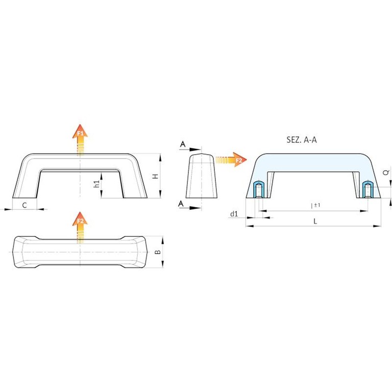 | Code | art. | L | I | B | H | h1 | C | d1 6H | Q | Poids (g) | F1 (N) | F2 (N) |