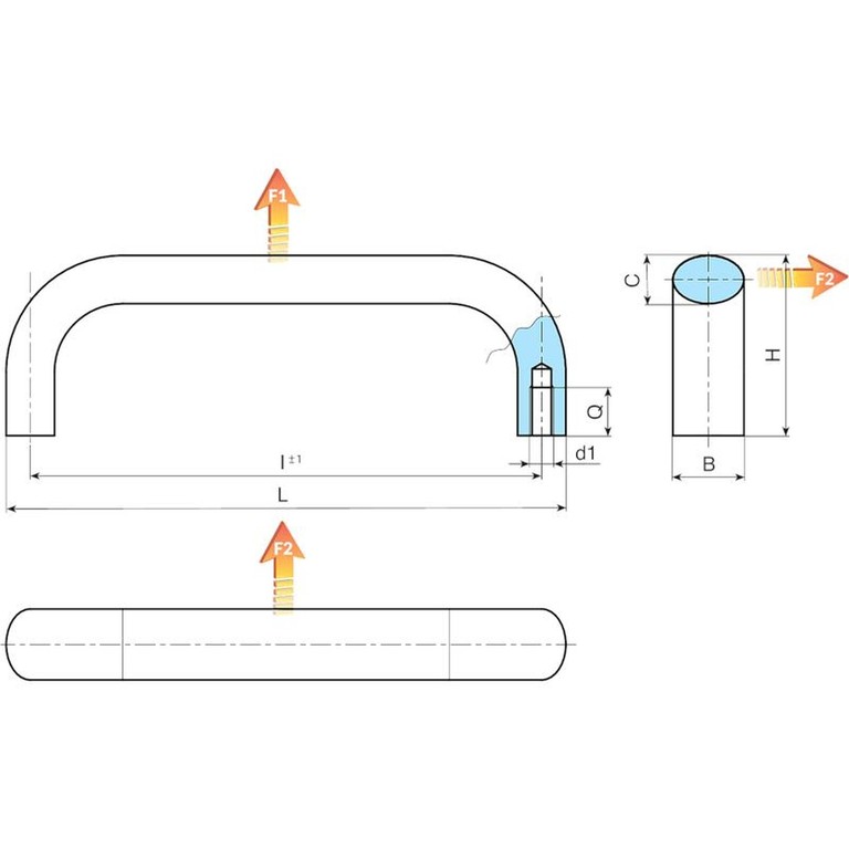 | Code | art. | L | I ±1 | H | B | C | Q | d1 | Poids (g) | F1 | F2 |