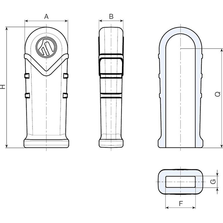 | Code | art. | H | A | B | F | G | Q | Poids (g) |