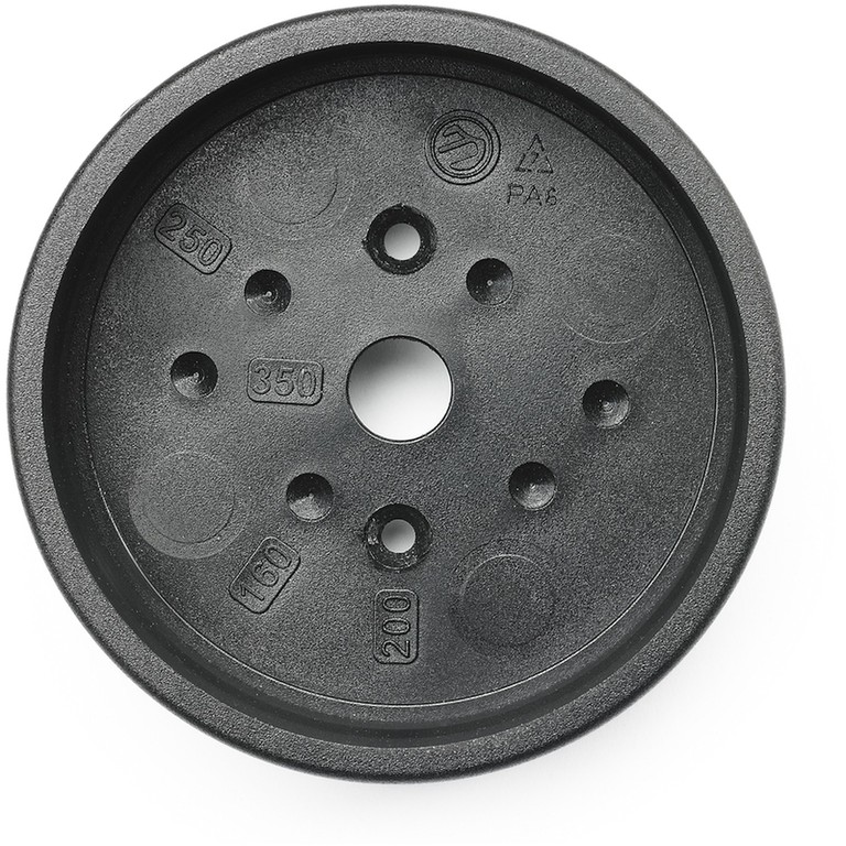 Un adaptateur peut être utilisé avec plusieurs volants à rayons. Pour la fixation, choisissez d'abord la paire de trous par rapport au diamètre du volant utilisé (pour faciliter l'utilisation, les diamètres sont gravés à côté de l'un des deux trous). Ensuite, il est nécessaire de réaliser les trous passants à l'aide d'un simple foret d.4,5. Attention : le trou doit alors être fraisé pour obtenir le logement de la vis à tête fraisée. Les deux vis autotaraudeuses (TPS 4x16) sont fournies avec l'adaptateur. À titre d'exemple, le dessin ci-contre montre les trous fraisés obtenus sur l'article K870.T8001 pour un volant à rayons Boteco d'un diamètre de 200 mm.
