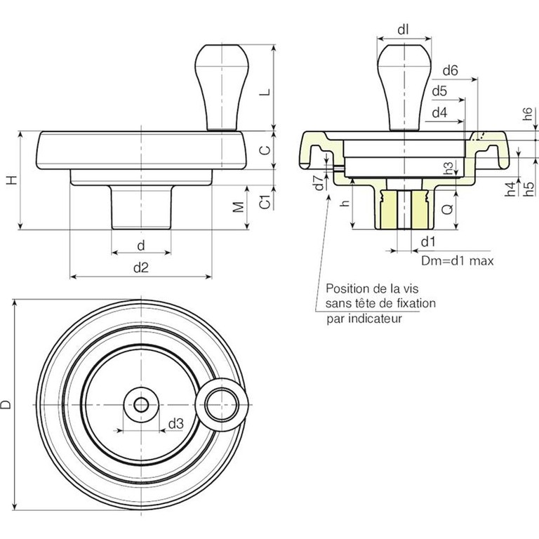 VOLANT DE MANŒUVRE MASSIF AVEC LOGEMENT POUR INDICATEUR ET MANCHE ROTATIF M202