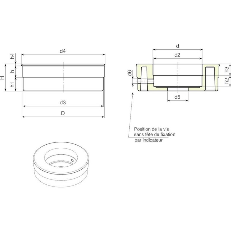| Code | art. | D | d | d2 | d3 | d4 | d5 | d6 | H | h | h1 | h2 | h3 | h4 | Poids (g) |