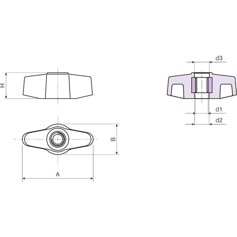 GRAND ÉCROU PAPILLON AVEC DOUILLE ET TROU FILETÉ PASSANT