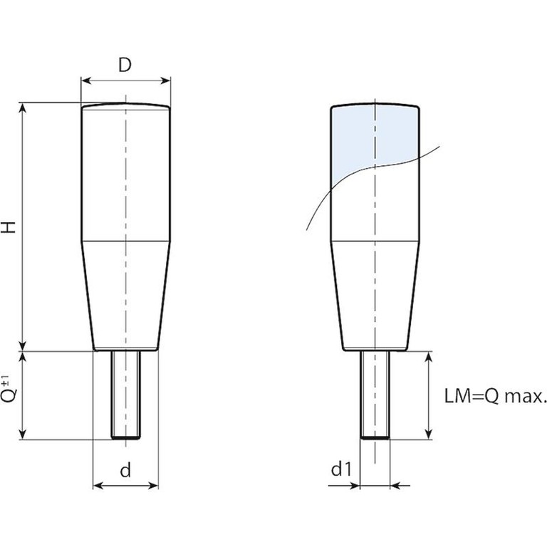 | Code | art. | H | D | d | LM | d1 6g | Q | Poids (g) |
