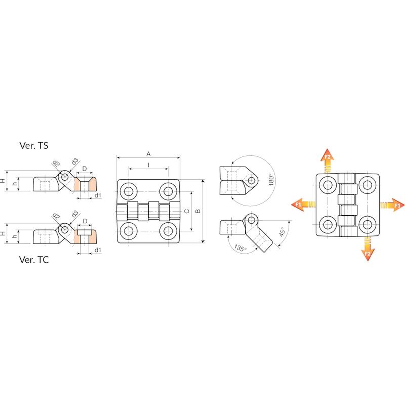 CHARNIÈRE AVEC TROUS PASSANTS ET GROUPILLE EN ACIER INOX