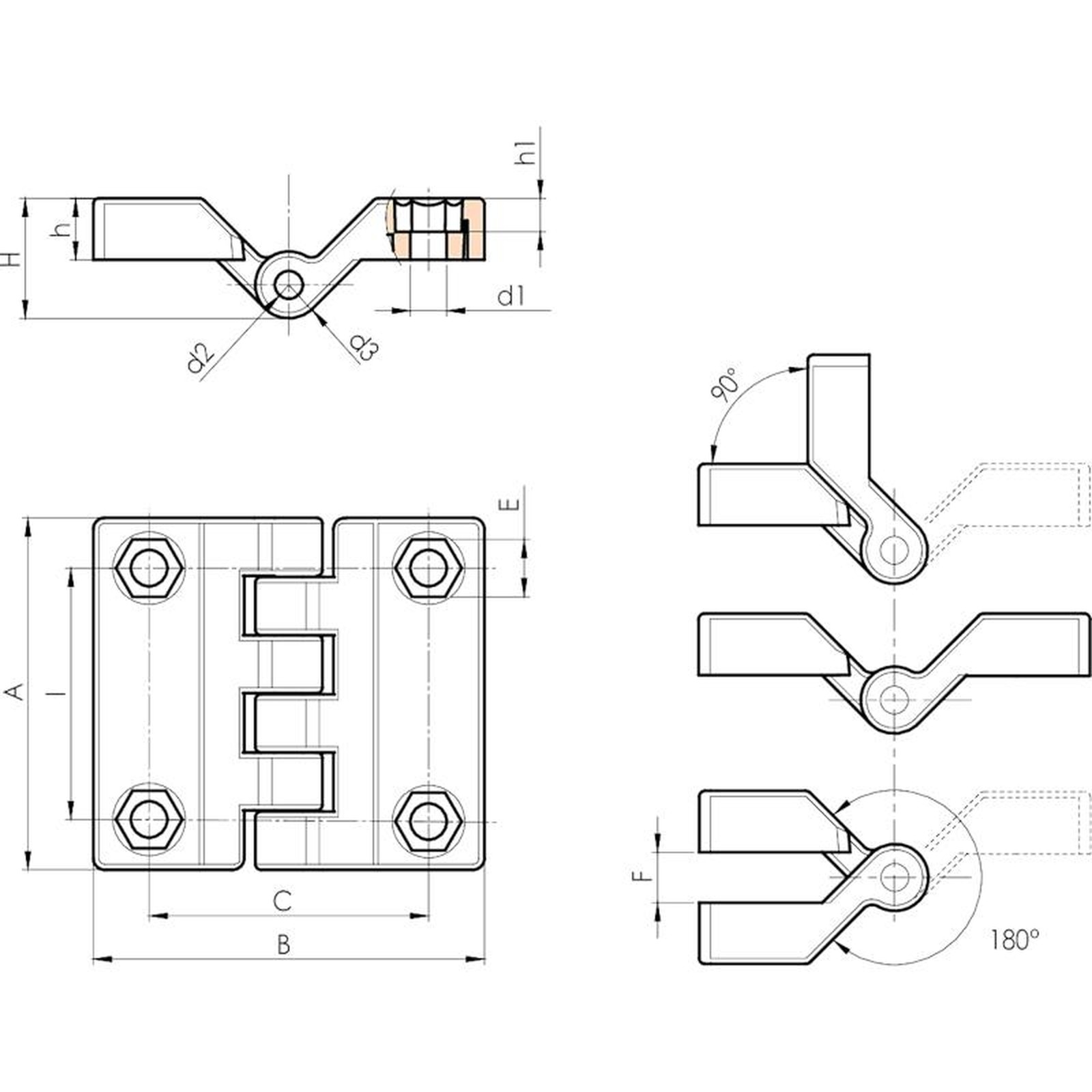 La cerniera O402 è stata espressamente progettata per essere utilizzata sui profili di alluminio utilizzati per la costruzione di barriere modulari.