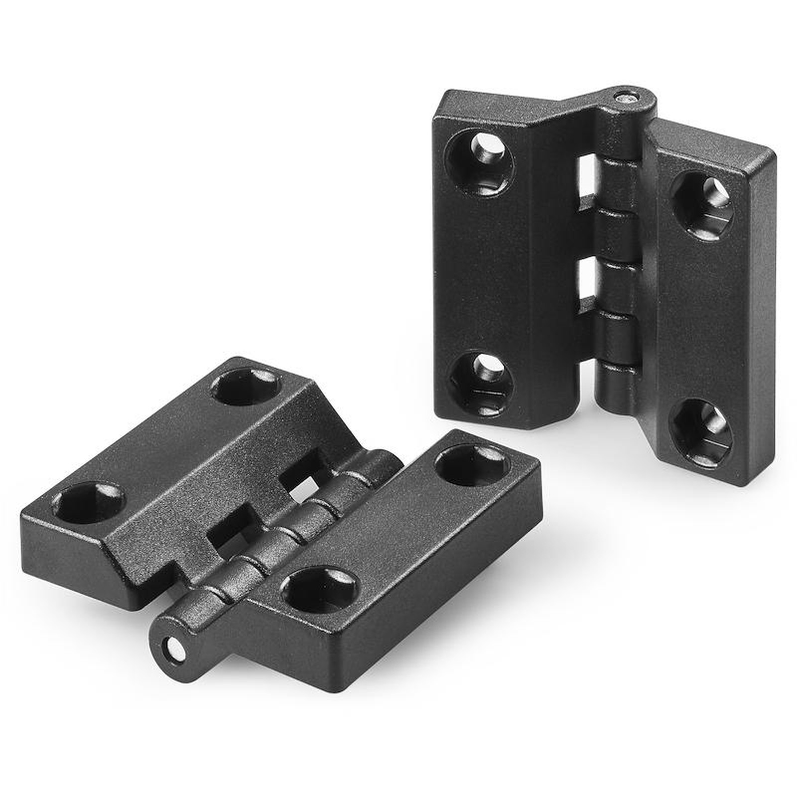 CHARNIÈRE PLATE AVEC AXE DE ROTATION SURBAISSÉ ET TROUS PASSANTS