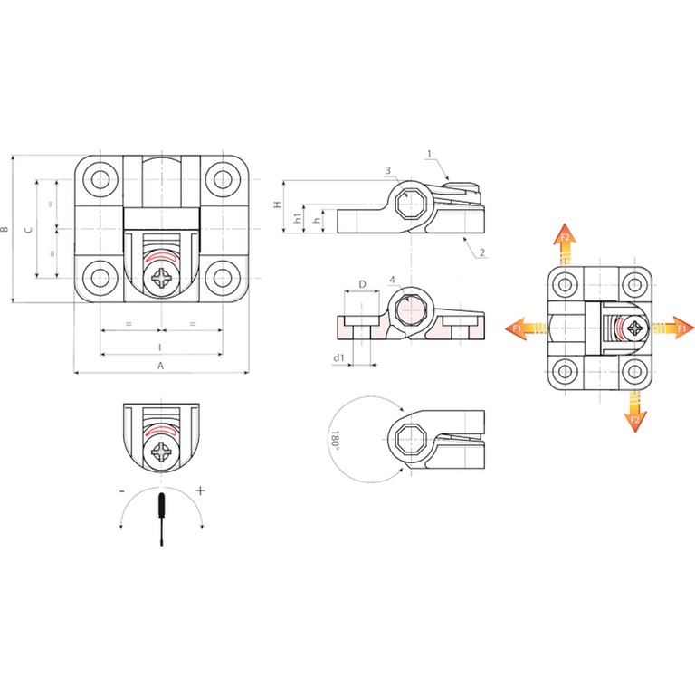CHARNIÈRE À FRICTION RÉGLABLE ET TROU PASSANT