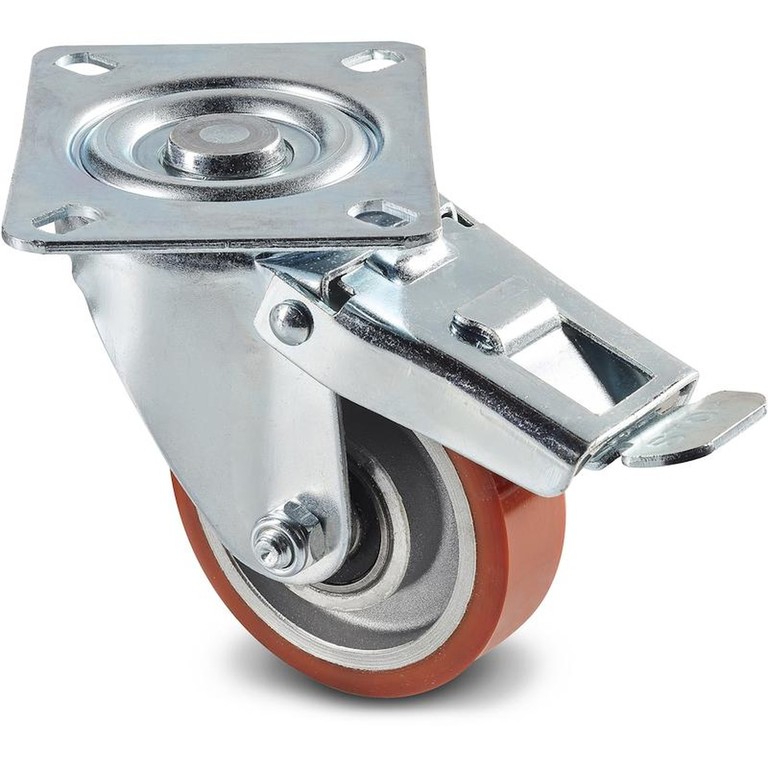 ROUE EN ALUMINIUM / POLYURÉTHANE AVEC FOURCHE FIXE EN ACIER ET ROULEMENTS EN ACIER
