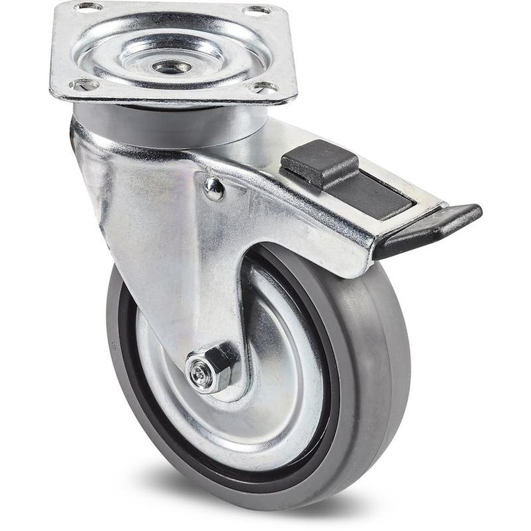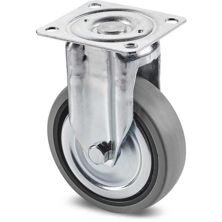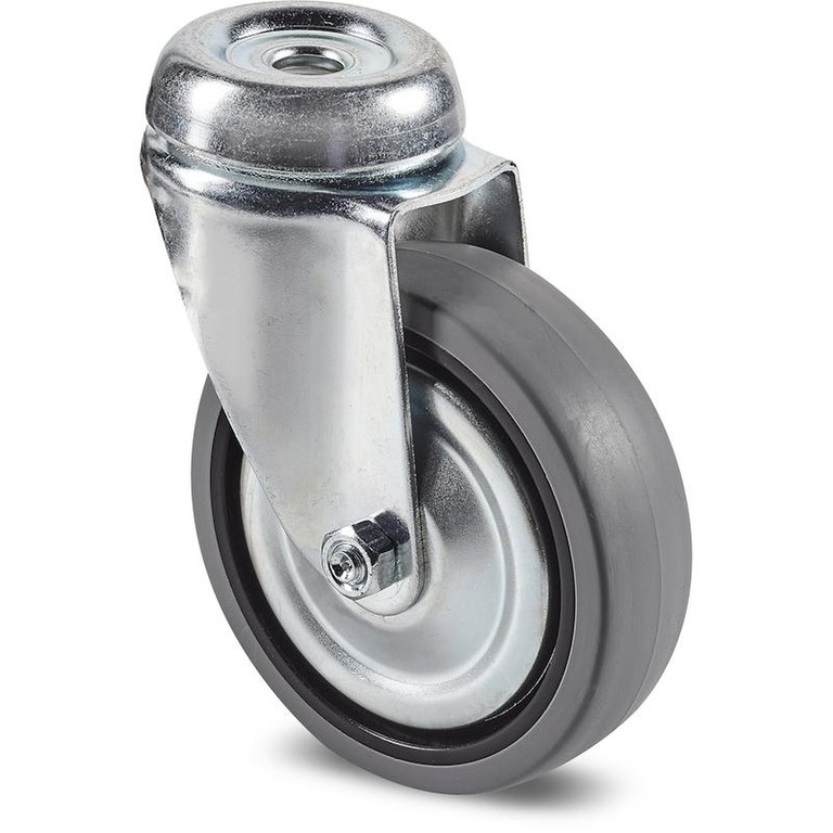 ROUE EN POLYPROPYLÈNE / CAOUTCHOUC AVEC SUPPORT TOURNANT ROND EN ACIER ET TROU LISSE PASSANT
