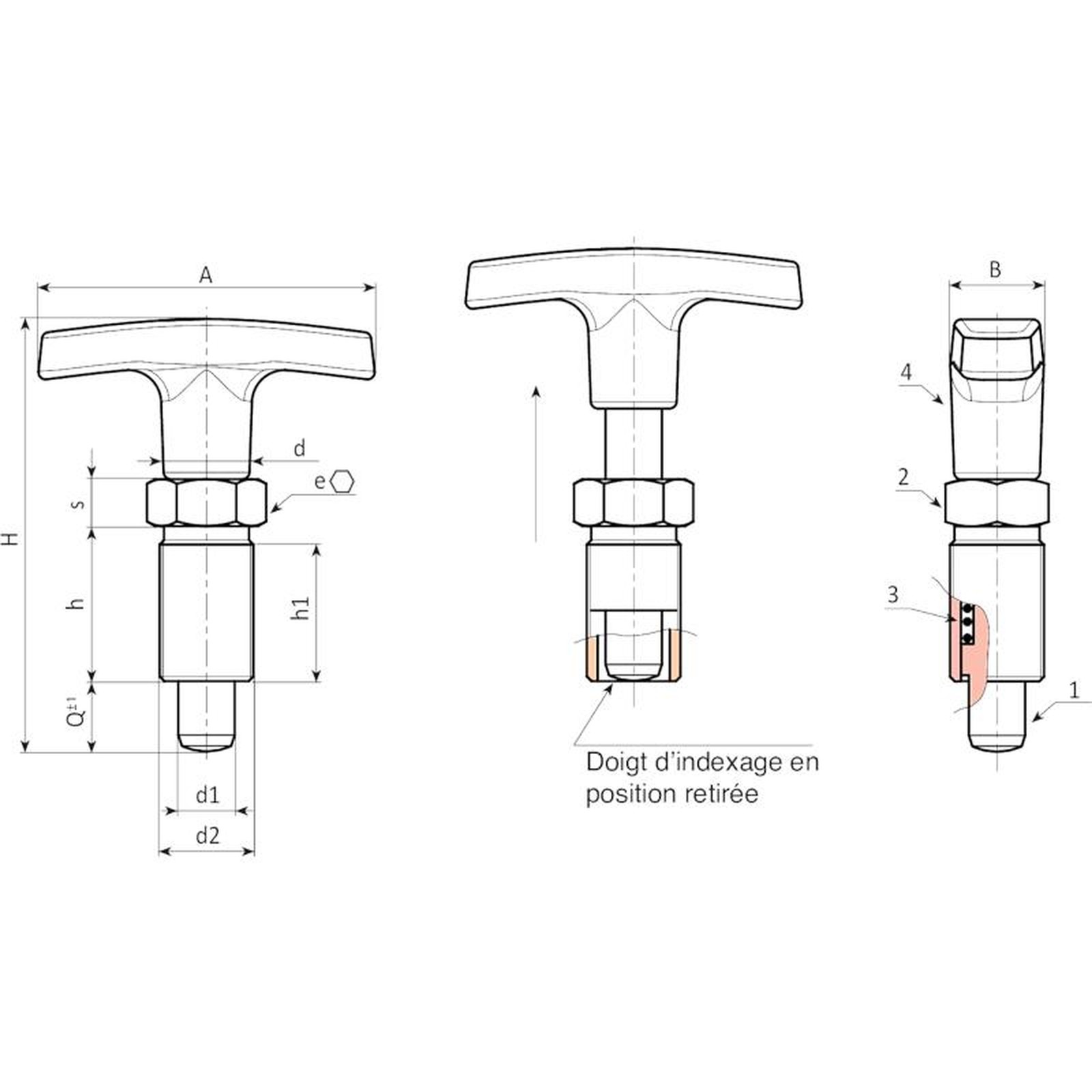 TIRANT AVEC DOIGT D’INDEXAGE FILETÉ EN ACIER