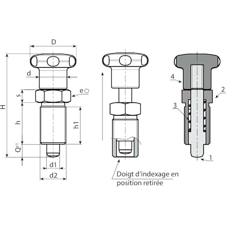 > Nous conseillons l’exécution du trou de logement de la tige du doigt d'indexage avec tolérance H7.