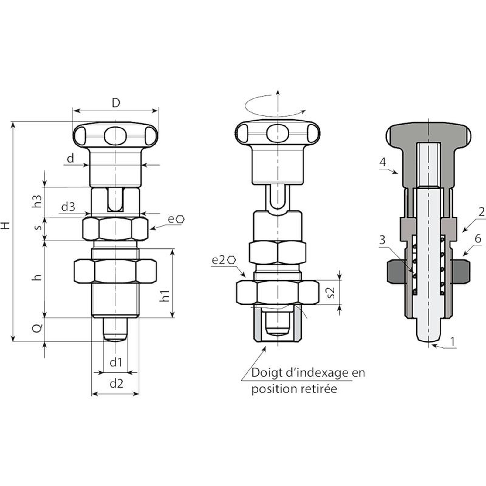 Doigts d’indexage filetés petit pas - Inox intégral