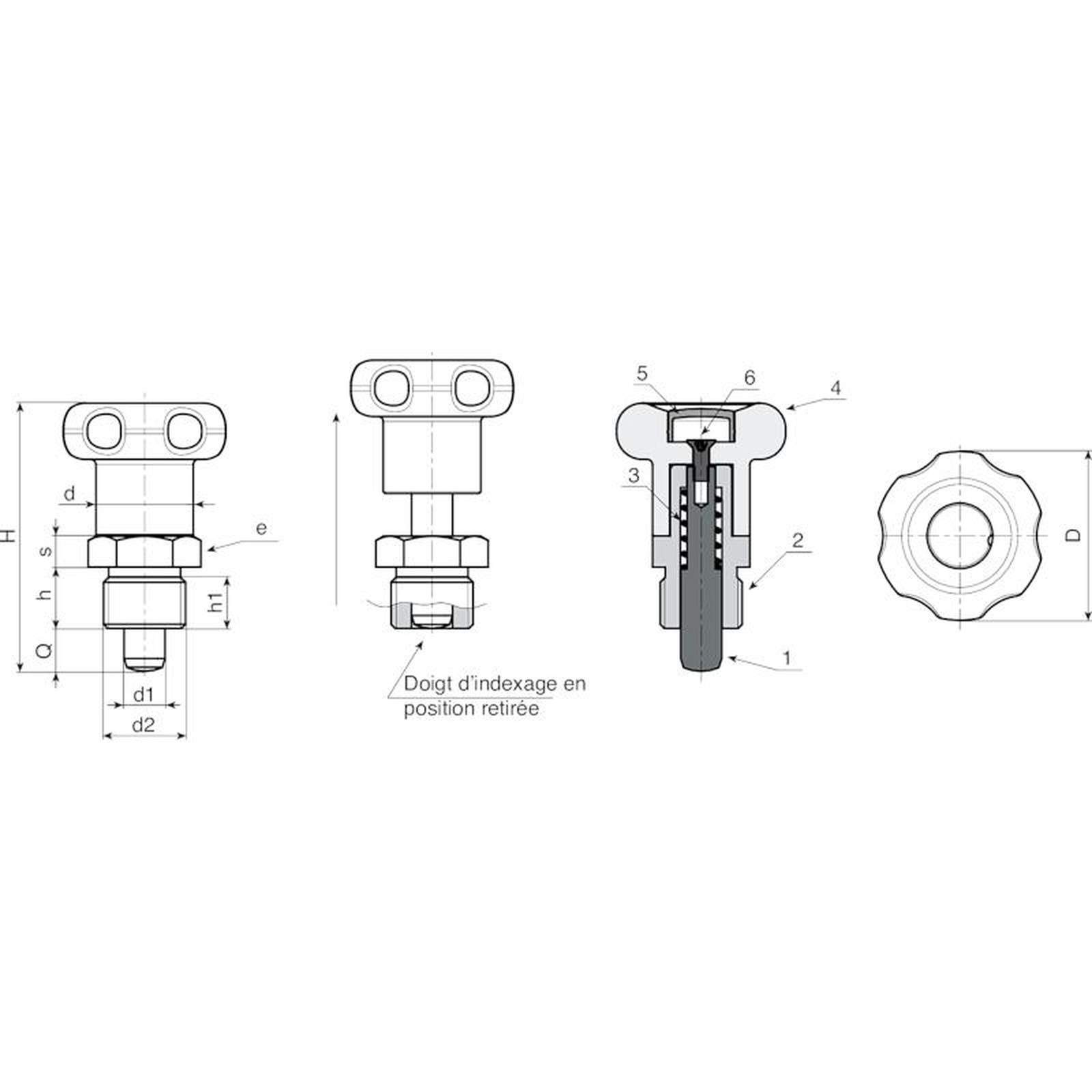 > Nous conseillons l’exécution du trou de logement de la tige du doigt d'indexage avec tolérance H7.