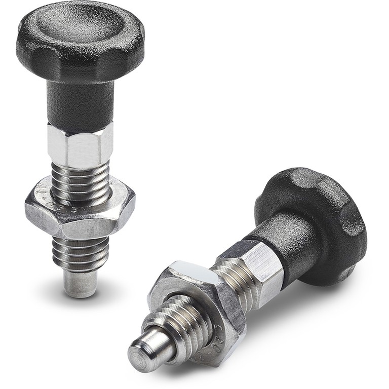 (2) Corps doigt d’indexage fileté en acier inox (Aisi 303).