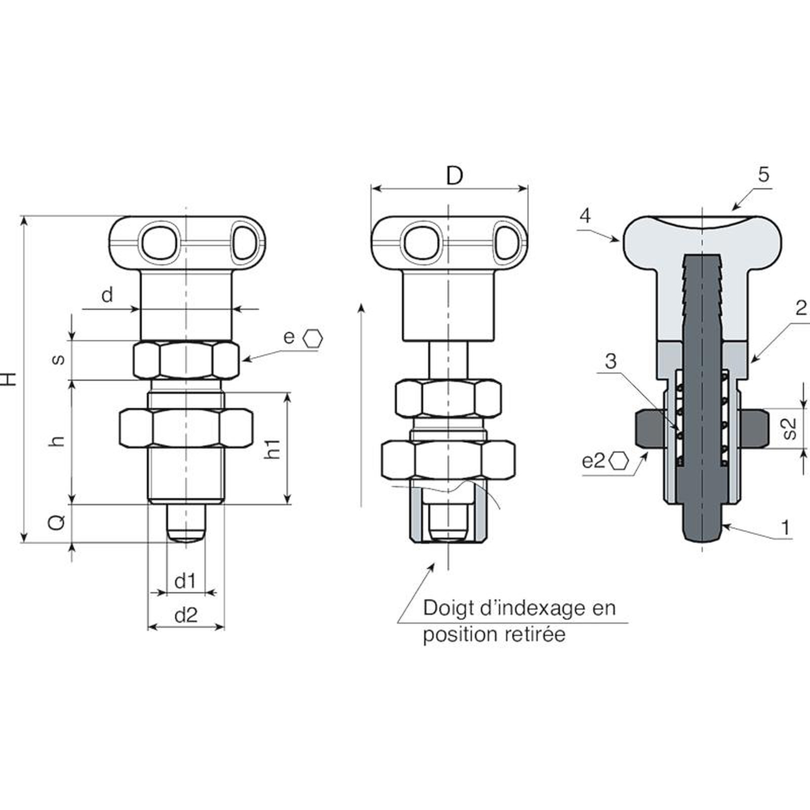 Doigts d’indexage filetés petit pas - avec pommeau