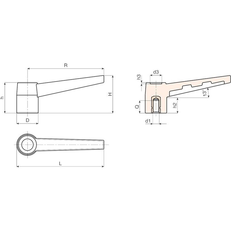 | Kód | Art. | L | R | H | D | h | h2 | h3 | d3 | d1 6H | Q | Tömeg (g) |