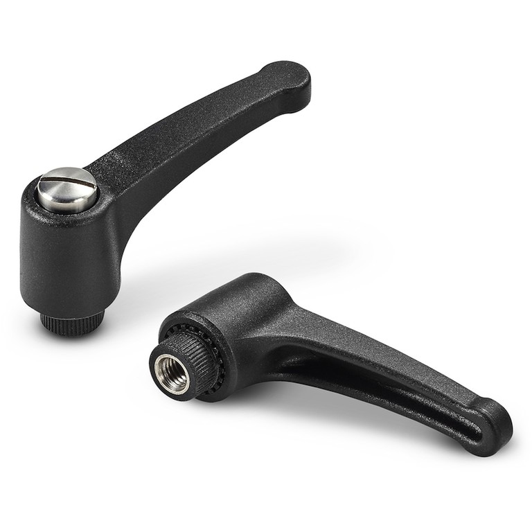 A csavarral és menetes betéttel ellátott, beosztásos rögzítőkar a standard változat a katalógusunkban, nem úgy, mint a gombbal (A582) ellátott, rögzített változat, ami gazdaságosabb. A masszív kialakítás és a lezárási szilárdság azonos a teljes sorozatban. A rögzítőcsavar jelenlétének két előnye van: az első az, hogy csavarhúzóval lehet megszorítani a kart; a második az, ahol a kart nem lehet 360°-ban elforgatni a szereléshez, hogy a csavart meg lehet lazítani, és ezután a kart le lehet szerelni, majd vissza lehet szerelni a helyére az alkalmazáson. Alakja és az, hogy a kar testét meg lehet emelni és más szögben lehet elhelyezni, azt jelenti, hogy olyan szűk terekben is használható, ahol nincs hely a teljes elforgatáshoz, például szerszámgépeken, famegmunkáló gépeken, csomagológépeken vagy egyéb berendezéseken és gépezeteken. Ideális az olyan ágazatokban, mint például az ipari világítás és professzionális testedzés (edzőtermi berendezések és szobabiciklik). Az A580 beosztásos rögzítőkar nagy szilárdságú merevített poliamid anyagokból készül. Különböző változatokban és modellekben kapható (beosztásos rögzítőkar gombbal, fémből készült, beosztásos rögzítőkar, rögzített kar, műanyagfogantyú, fémfogantyú stb.).