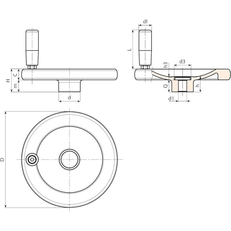 | Kód | Art. | d | D | H | m | c | h | h3 | d3 | d1 H7 | Q | dl | L | Tömeg (g) |