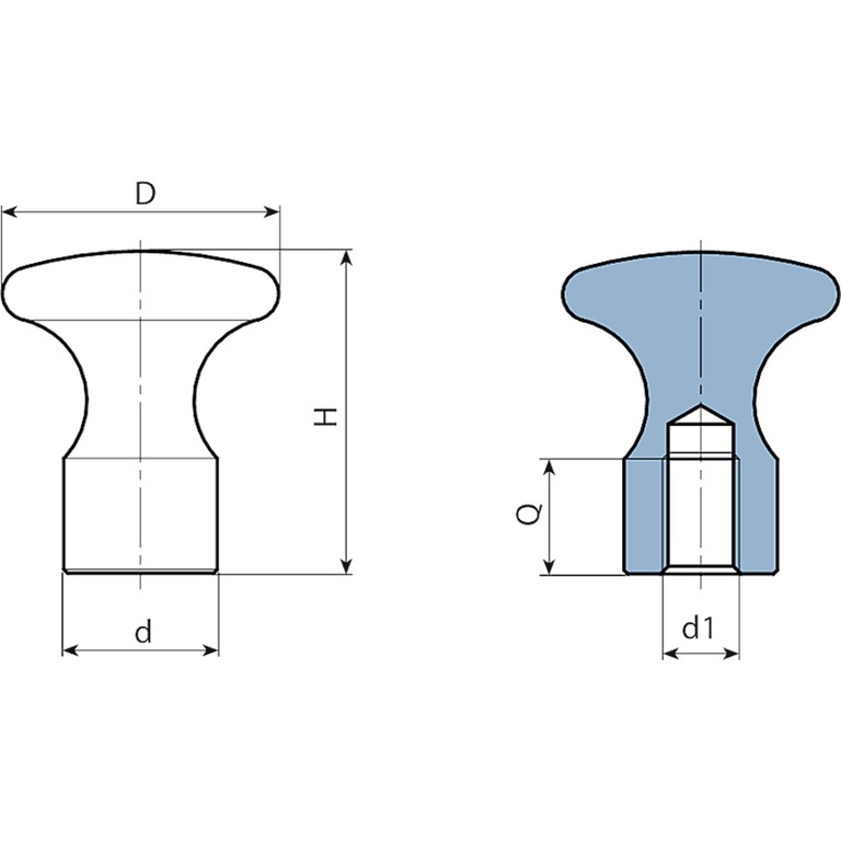 Kérésre és speciális mennyiségek esetében a gombok d1 furatátmérővel szállíthatók a vevő rajza szerint.